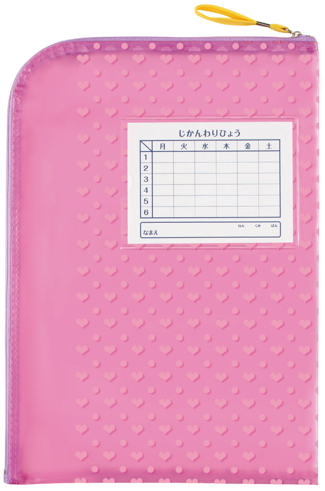 L型ファスナーで出し入れしやすい連絡袋。配布されるプリントがそのまま入ります。小学校低学年のお子様でも簡単にプリントの出し入れができるので配布されたプリントが折れたり汚れたりしません。時間割表台紙付き。