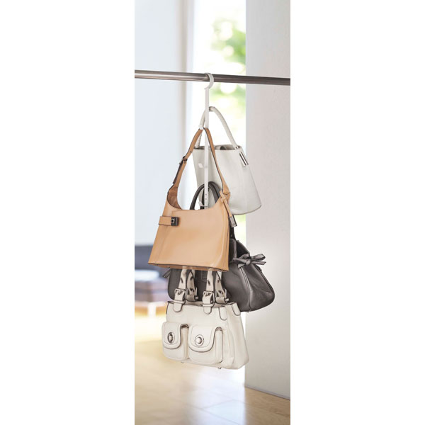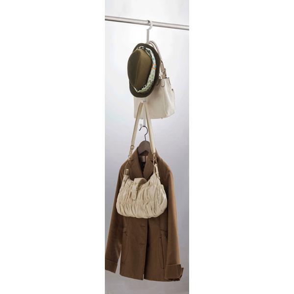 帽子・カバン・衣類・小物などをまとめて一括収納。クローゼットのハンガーパイプにかけるだけ。縦長タイプで省スペース型のハンガー。散らかりがちなバッグ・帽子などをまとめてクローゼットに一括収納。