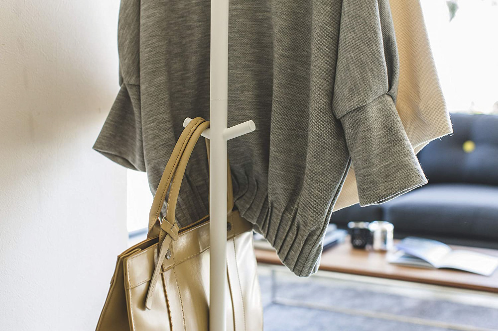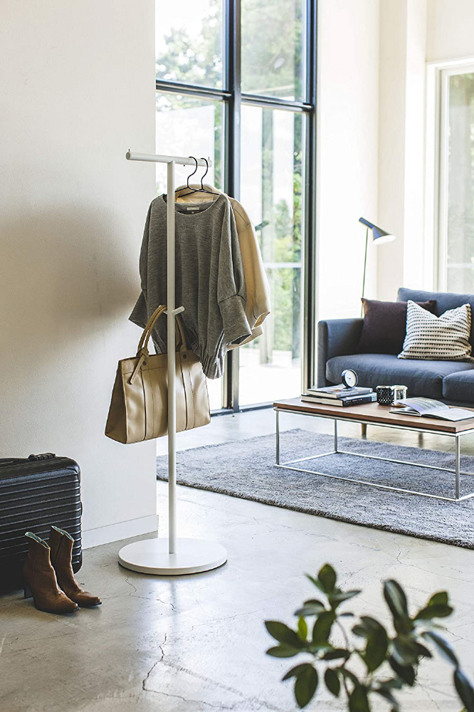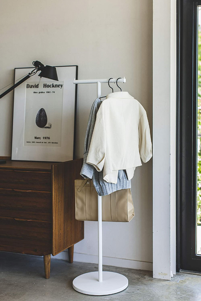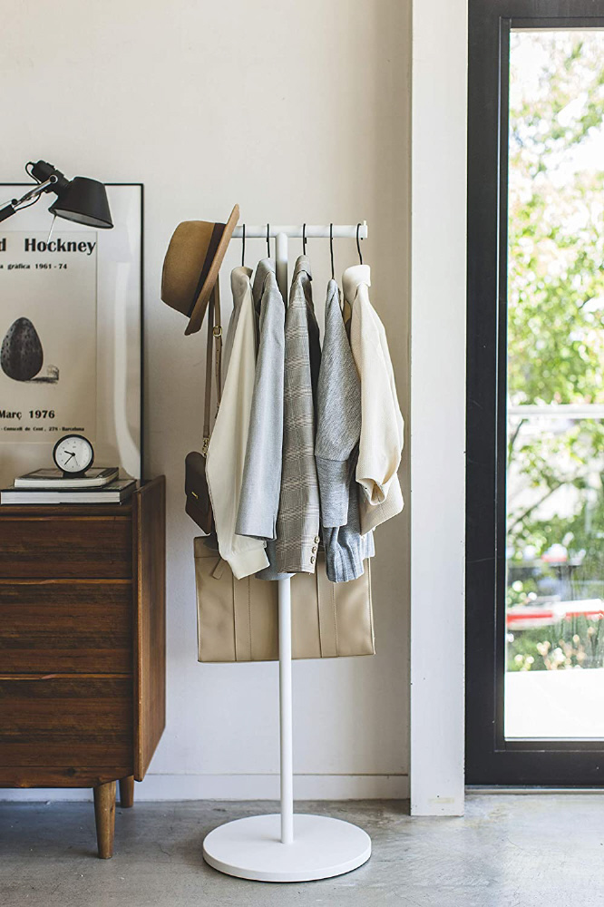 ハンガーをハンガーラックのように横並びで掛けることができるので服の選別が楽にできます。ロングコートやワンピースなどの丈の長い衣類もたっぷり収納可能 。かばんを掛けられるフック付き。ハンガーを並べて掛けられるポールハンガー