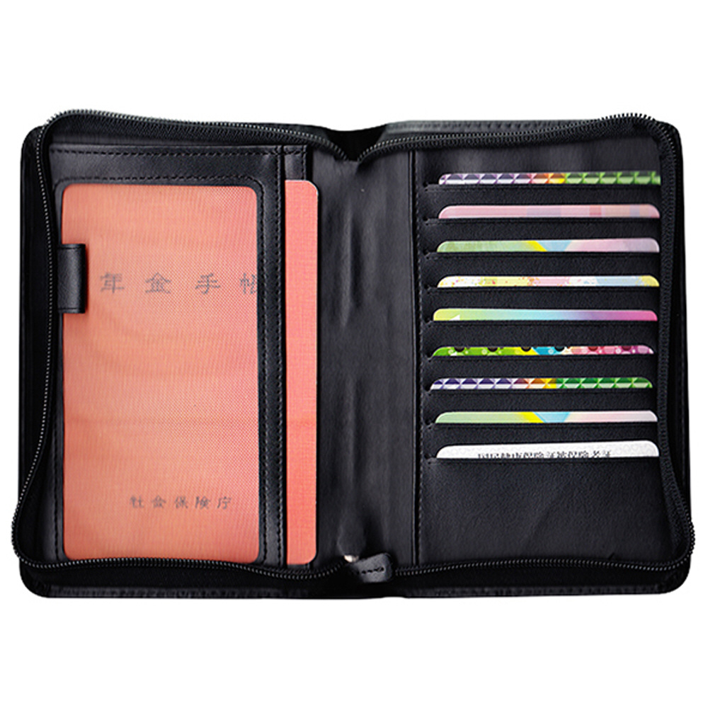 年金手帳、パスポート、預貯金通帳、健康保険証カードなど大切な物の携帯・保管に最適。携帯に安心なファスナー式。内側にはマチ無しポケット、マチなしメッシュポケット、片マチポケット、ペンホルダーつき。カードポケットは9箇所。A6サイズまでの母子手帳も入れられます。預貯金通帳が10冊収納できる、預貯金通帳ファイルS-10をセットすることができます。