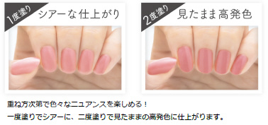 一度塗りでシアーに、二度塗りで見たまま高発色に仕上がるロングセラーのpaネイル