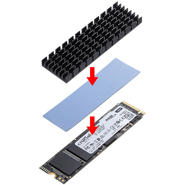M.2 SSDの熱対策に最適なアルミ製ヒートシンク 熱伝導シリコンパッド付