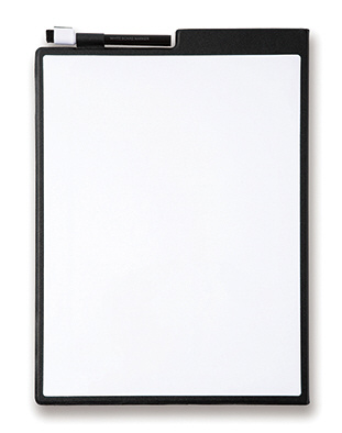 | 仕様1 | [材質] ボード面:ソフト鉄板/PET カバー:PU/再生紙/磁石/鉄板 マーカー:PP/フェルト/アルコール系インク [付属品]マーカー(黒) |