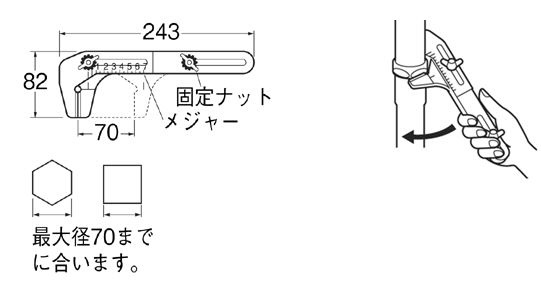 ●排水栓など径の大きなナット(対辺70)から小さなナットまで自在に締付け可。●材質 鋼