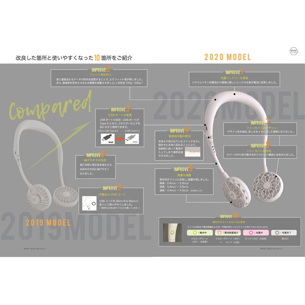 軽量な首掛けタイプなのでハンズフリーで快適。ファッションにあわせて楽しめるベーシックカラーモデル。USB充電で最大7時間の連続使用が可能。卓上に置いても使用できます。