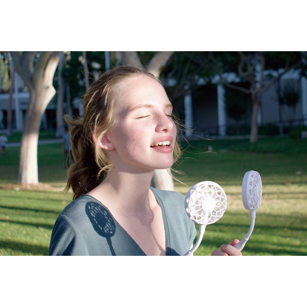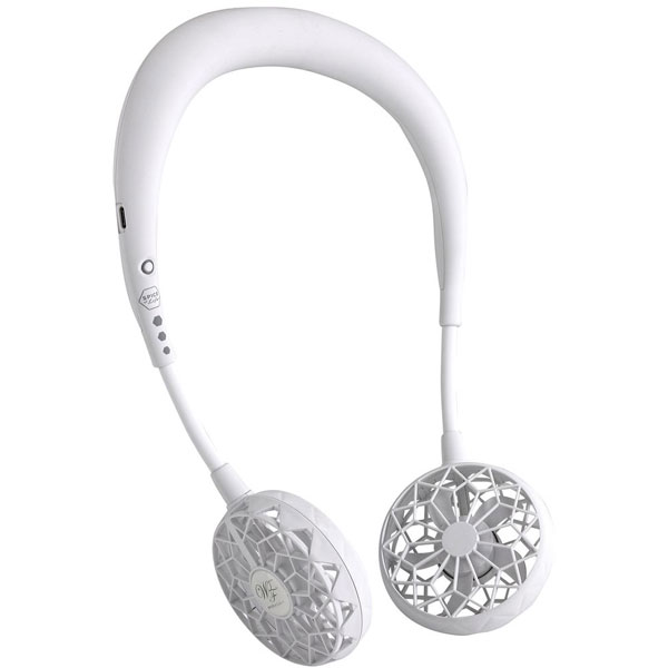 軽量な首掛けタイプなのでハンズフリーで快適。ファッションにあわせて楽しめるベーシックカラーモデル。USB充電で最大7時間の連続使用が可能。卓上に置いても使用できます。