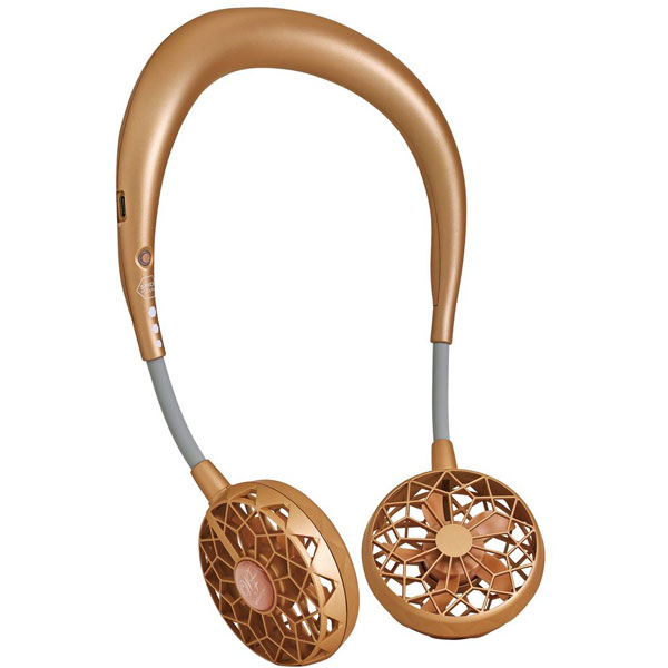 軽量な首掛けタイプなのでハンズフリーで快適。他人と差をつける特別なブロンズカラーを使用した高級感のある限定カラーモデル。USB充電で最大7時間の連続使用が可能。卓上に置いても使用できます。