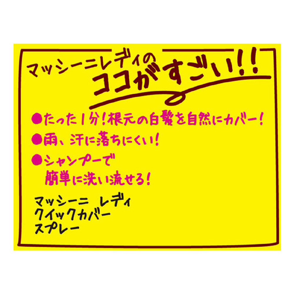 | 商品名 | マッシーニ レディ クイックヘアカバースプレー ブラウン(100g) 〔スタイリング剤〕 |