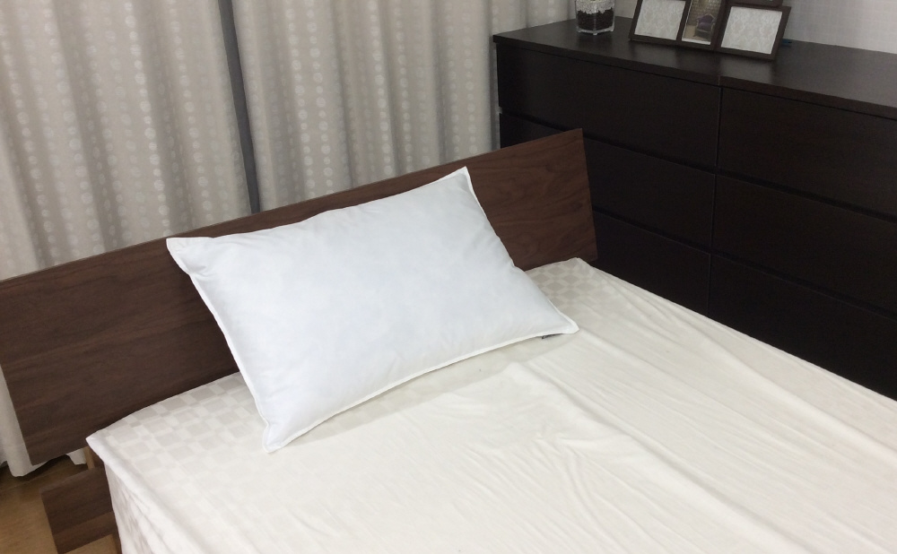 開封直後は、枕を折りたたんで臭気を押し出し、新しい空気と入れ替えて、3~4時間、日に干してからお使いください。