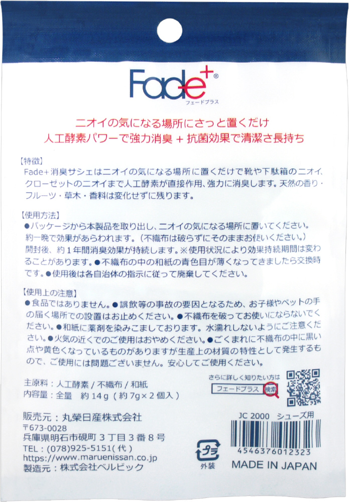 | 商品名 | Fade+フェードプラス 消臭サシェ シューズ用 〔消臭グッズ〕 |