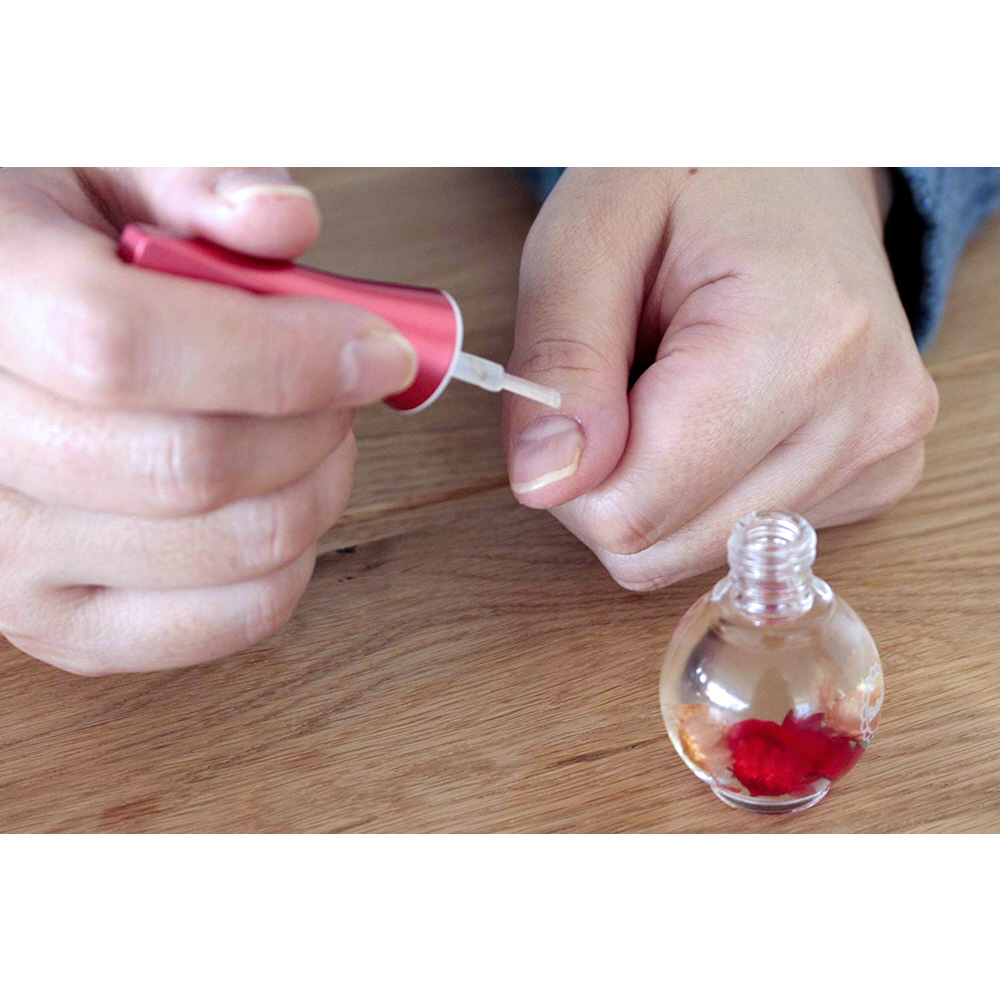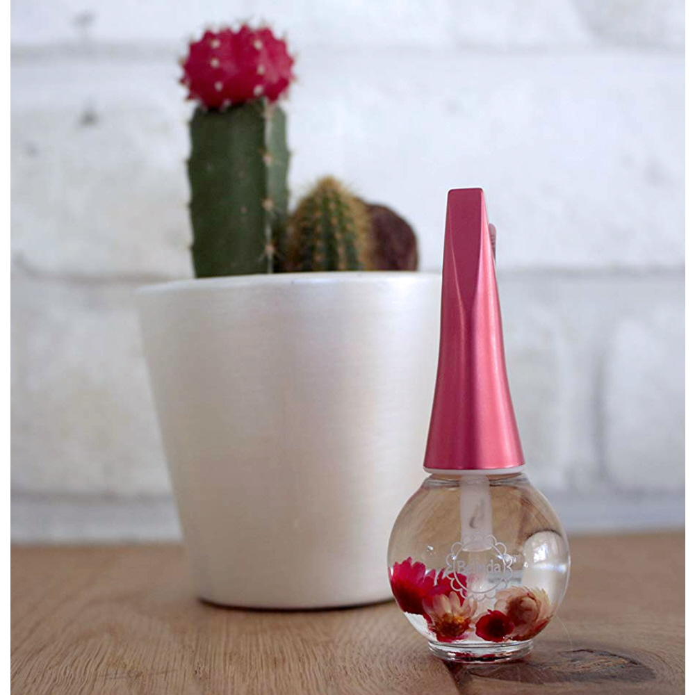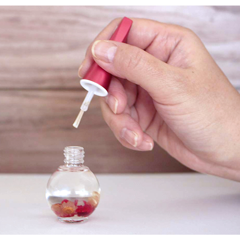 爪の甘皮部分(キューティクル)に潤いを与える可愛いお花入りのネイル用オイルです。爪を健やかに保ち、指先の乾燥やささくれを防ぎます。