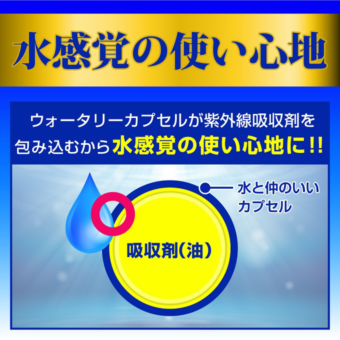 ウォータリーカプセルが紫外線吸収剤を包み込むから水感覚の使い心地に!