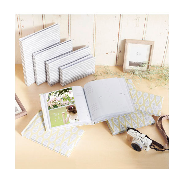 やさしい手触りの布に北欧をイメージした落ち着いた色合いの柄をプリントした布表紙アルバムです。しっかりとした芯材入りの表紙が大切な写真を保護します。