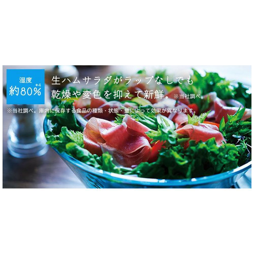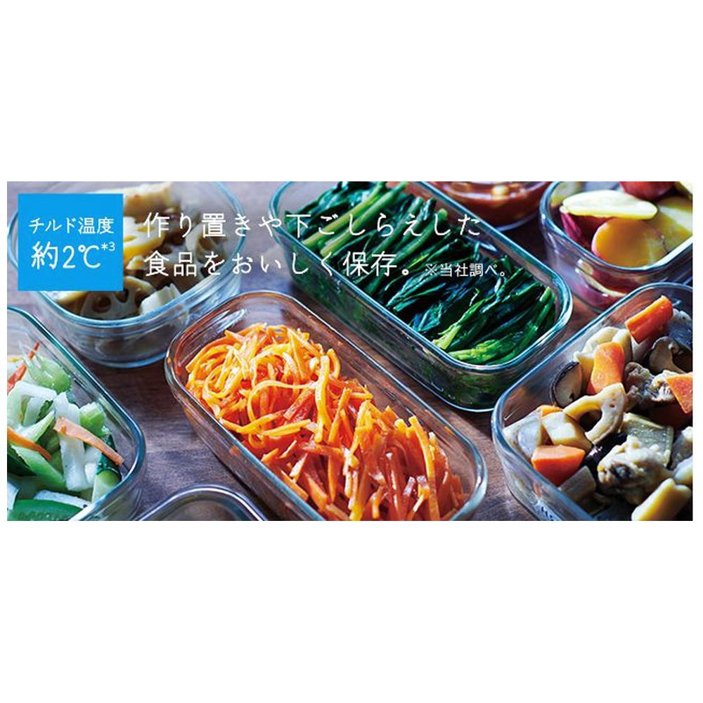 冷蔵室の棚のどこに置いても鮮度長持ち「まるごとチルド」。急いで冷やしたいときに便利、新採用「クイック冷却」。さまざまな独自機能で食品をおいしく保存。