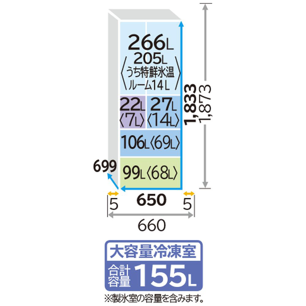 | 冷蔵室容量 | 266L |