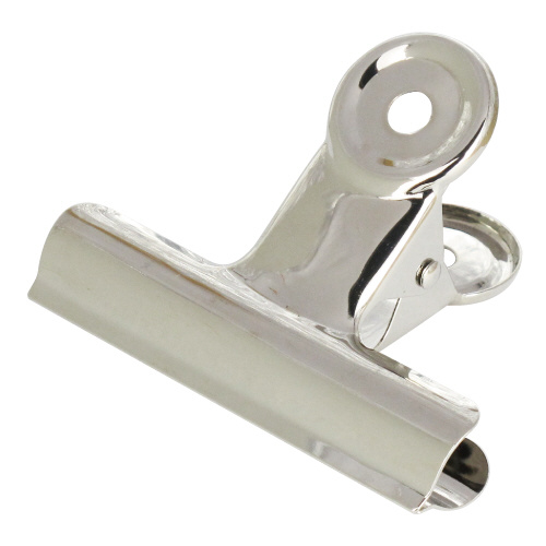 強力なバネがガッチリ書類をまとめます。持部の穴がフックを可能にします。
