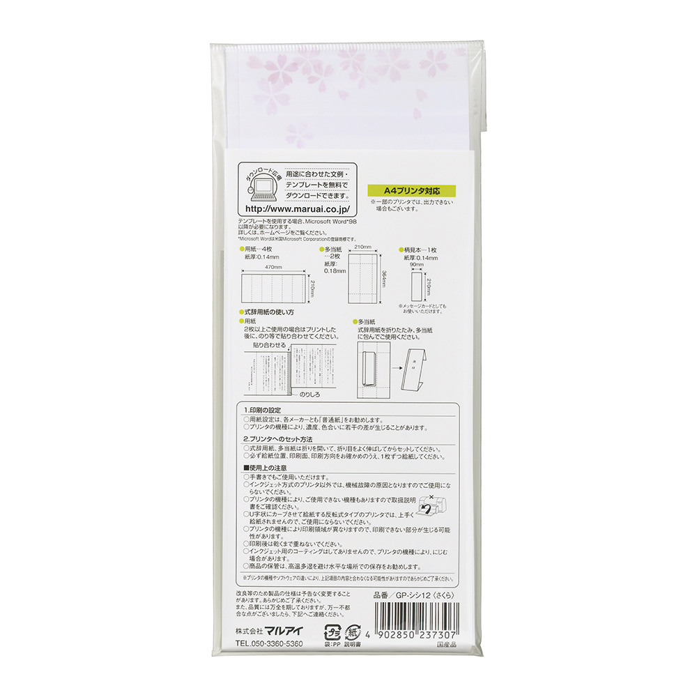 春のシーズンにピッタリのさくら柄のご家庭用のインクジェットのプリンタで印刷できる式辞用紙セット。