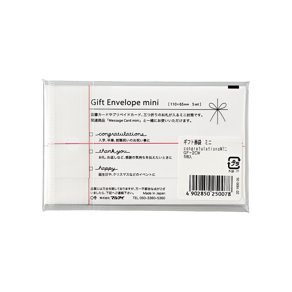 図書カードやプリペイドカードの贈答に、ぽち袋の代わりとして使用できる封筒タイプのギフト券袋。