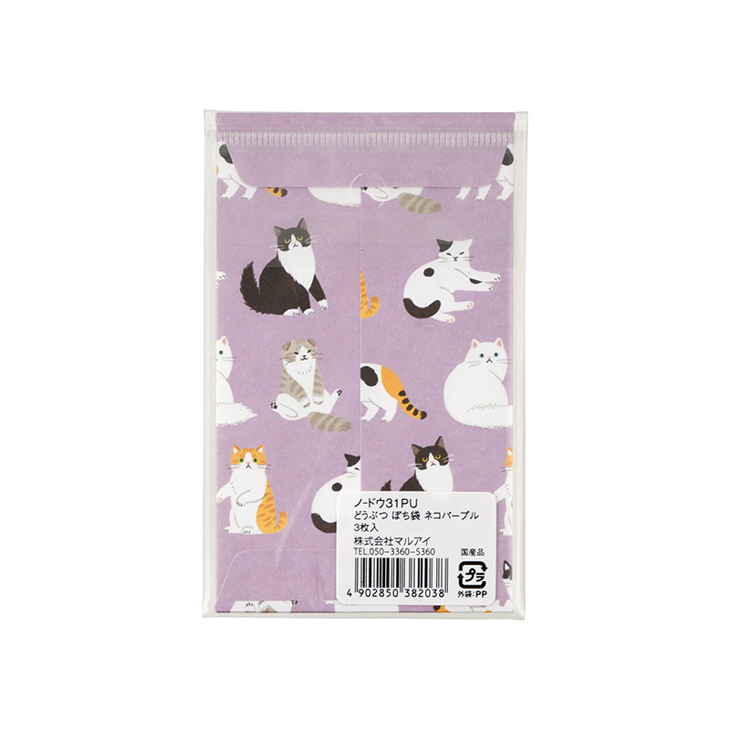 どうぶつ ぽち袋 ネコパープル ノ-ドウ31PU