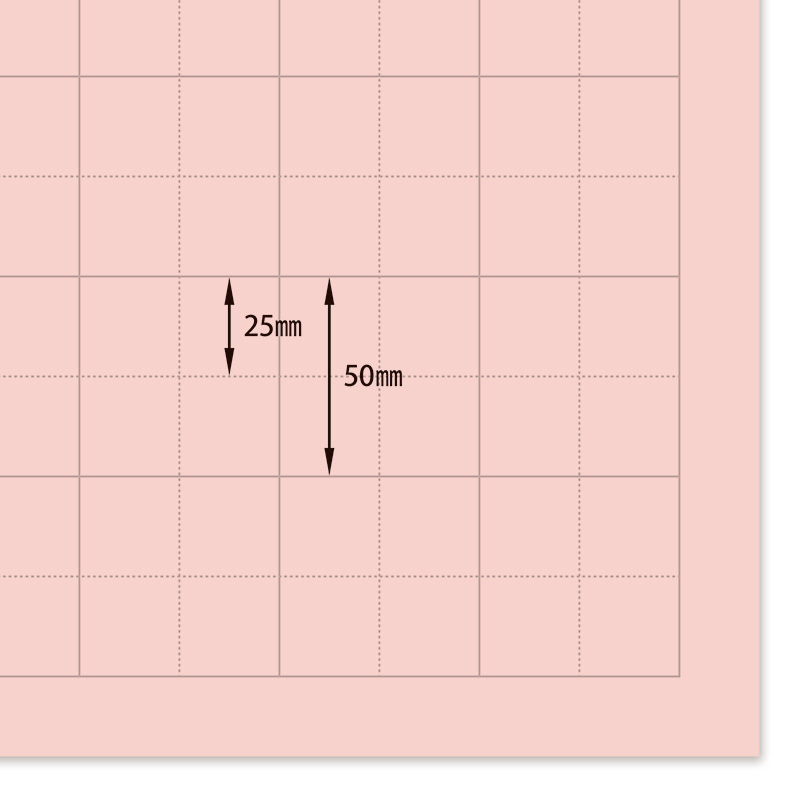 図表づくりなどに便利なマス目入り模造紙(ピンク色)です。1枚出すと次の1枚が出てくるアイデア巻き。またケース入りのため、出し入れによる傷や汚れがつきません。50mm方眼印刷(グレー色)入り。裏面は方眼印刷されていない無地タイプ。サイズ:788×1,085mm20枚入。
