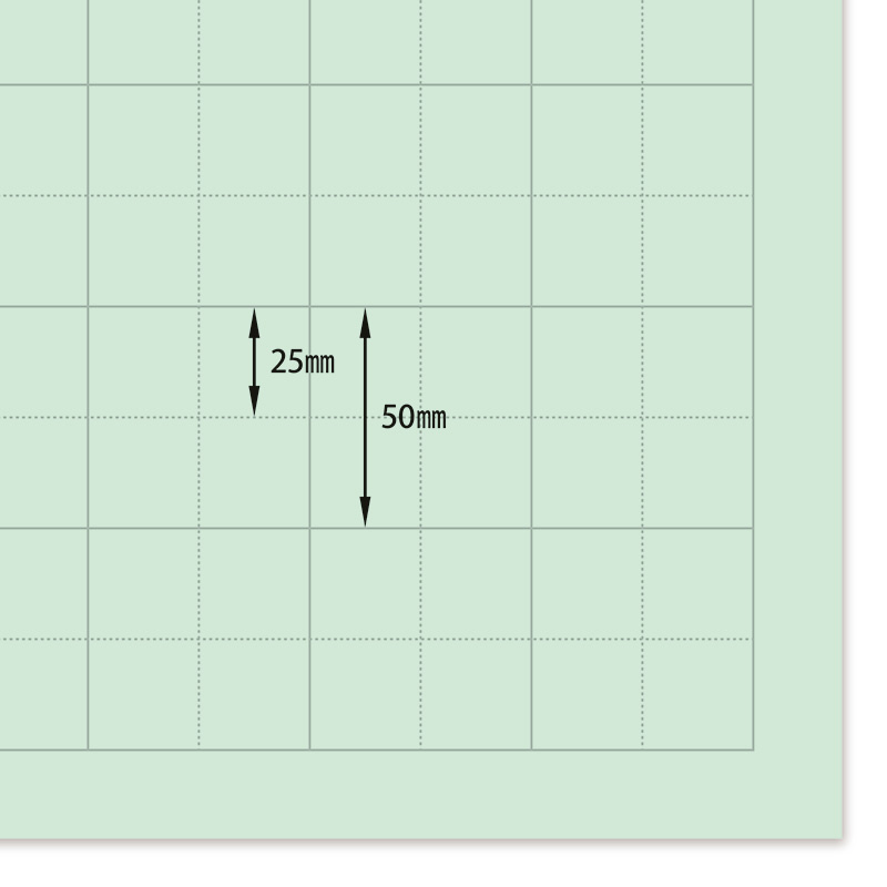図表づくりなどに便利なマス目入り模造紙(ブルー色)です。1枚出すと次の1枚が出てくるアイデア巻き。またケース入りのため、出し入れによる傷や汚れがつきません。50mm方眼印刷(グレー色)入り。裏面は方眼印刷されていない無地タイプ。サイズ:788×1,085mm。20枚入。