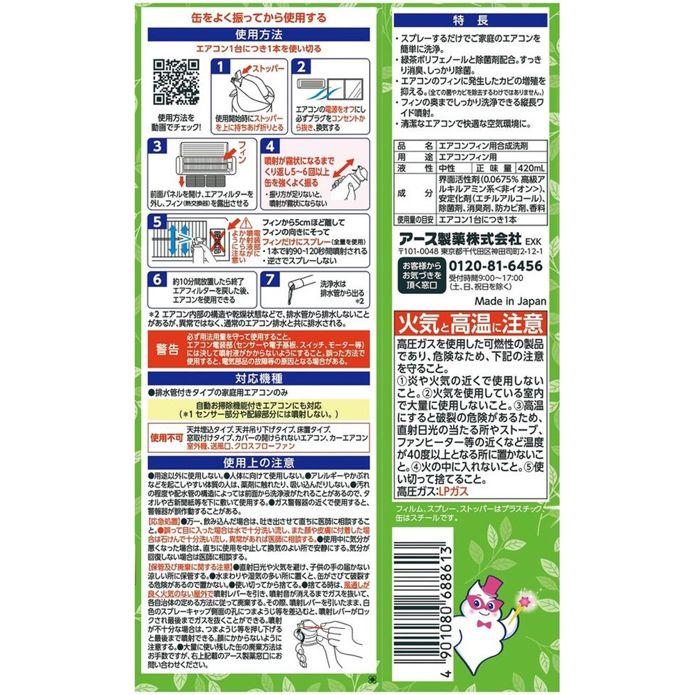 スプレーするだけでフィンの奥まで徹底洗浄!エアコンが2台あるご家庭や買い置きに便利な2本パックです。エアコン1台に1本をスプレーしてお使いください。