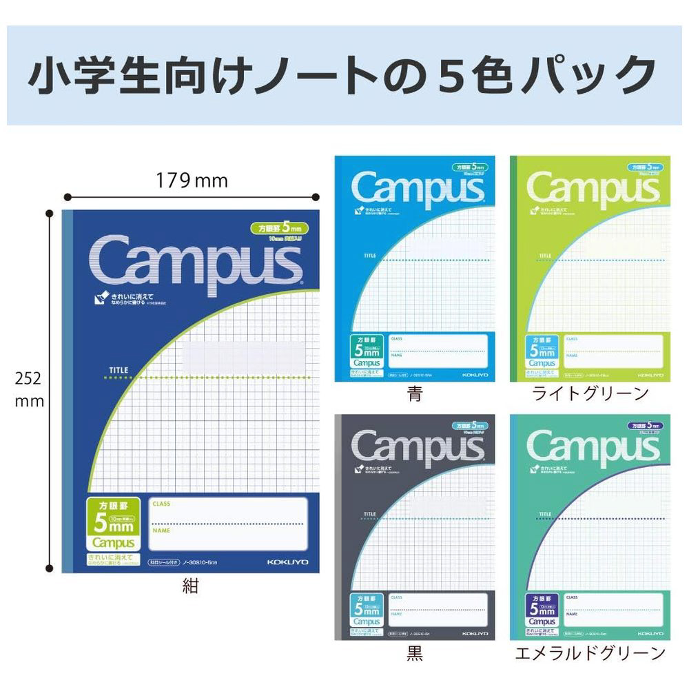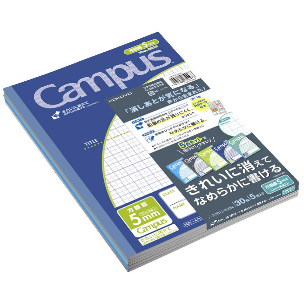 ノート(用途別) Campus(キャンパス) 青系5色パック 30S10-5X5B [セミB5・B5 /5mm /方眼罫線]