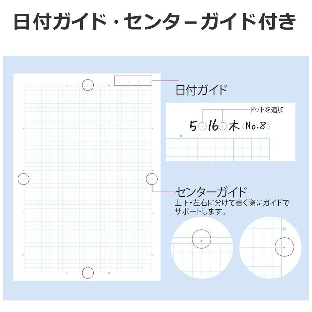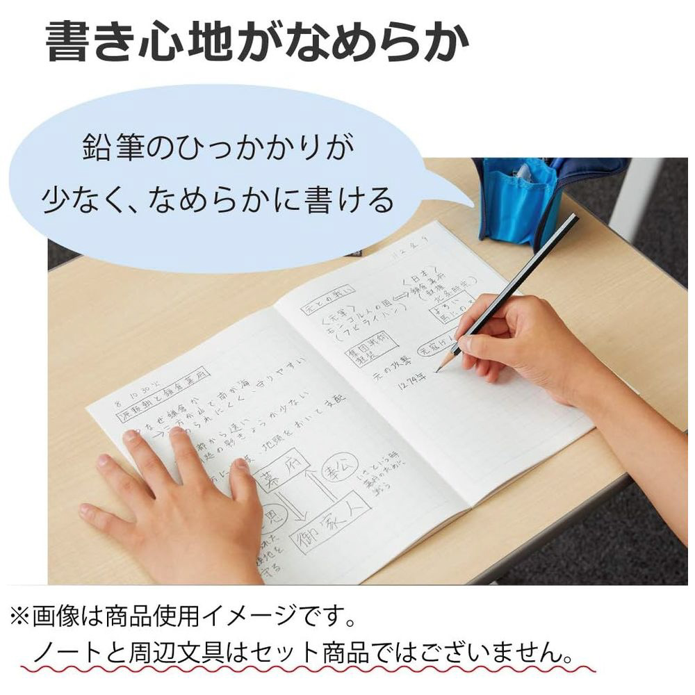 きれいに消えてなめらかに書ける(当社従来品比較)「消しあとが気になる」声から生まれたオリジナルペーパー!紙の表面の凹凸を小さくすることで、鉛筆の芯の汚れが残りにくくなりました。また、鉛筆のひっかかりが少なくなめらかに書けます。破れにくい丈夫な背クロスを使用ページを破ってもバラけない無線とじ製本1冊に1枚科目シール付き中紙に森林認証紙を使用しています。(中性紙)青、紺、黒、ライトグリーン、エメラルドグリーンの5色パックです。