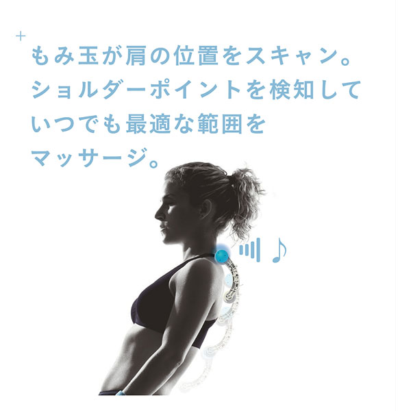 もみ玉が肩の位置をスキャンし、肩位置での「もみ玉接触角度変化」をセンサーが検知するため、最適な範囲をマッサージすることができます。