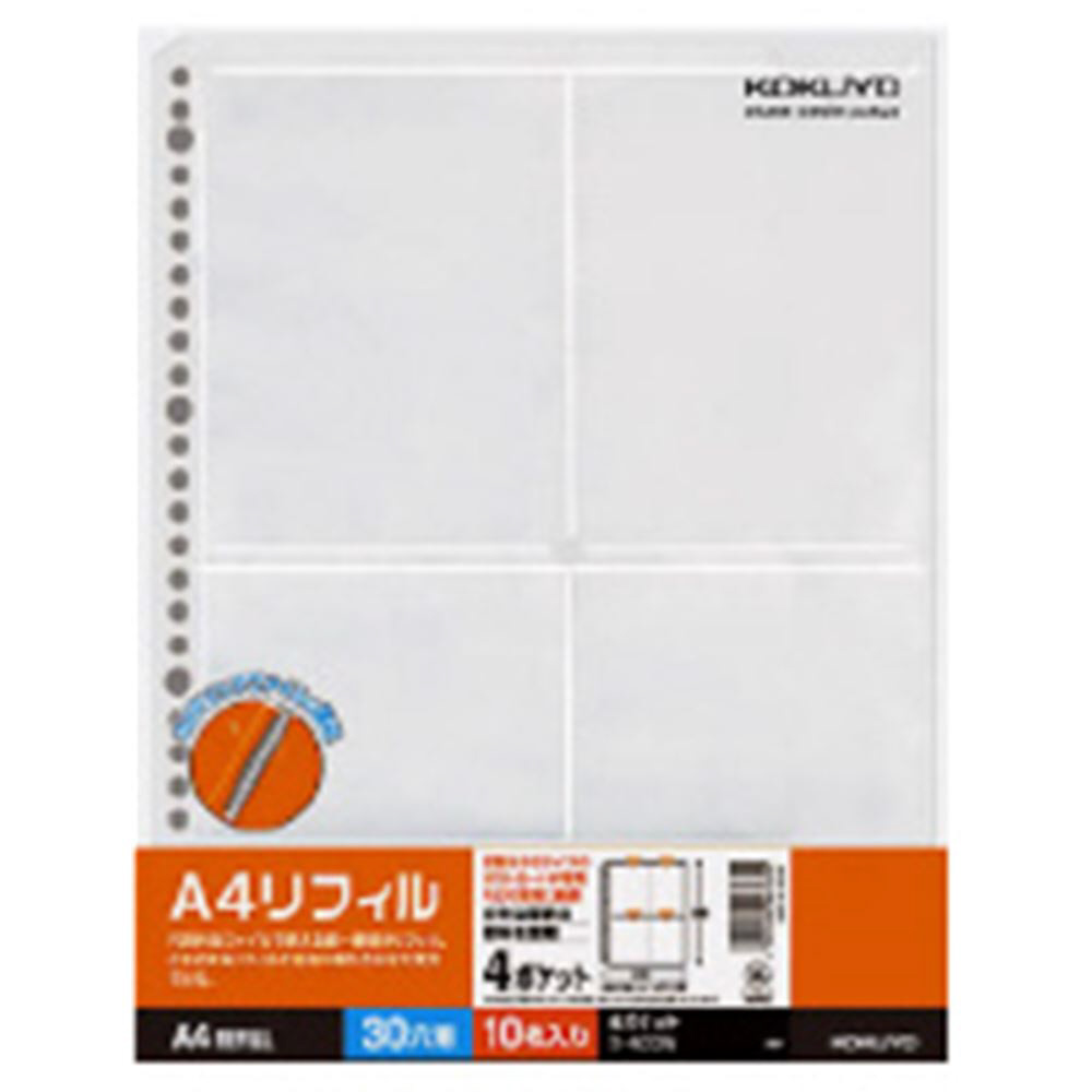 | 商品名 | A4リフィル 4ポケット ポストカードホルダー 30穴 10枚 ラ-A33N |