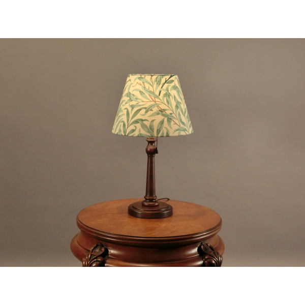 イギリスの芸術家、ウィリアム・モリスのデザイン生地をシェードに使用した、インテリアテーブルランプ。