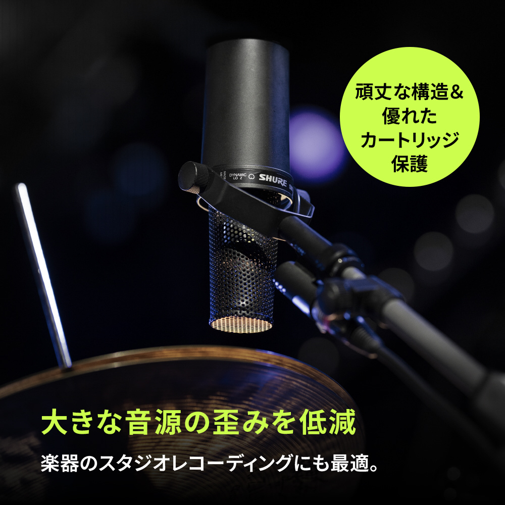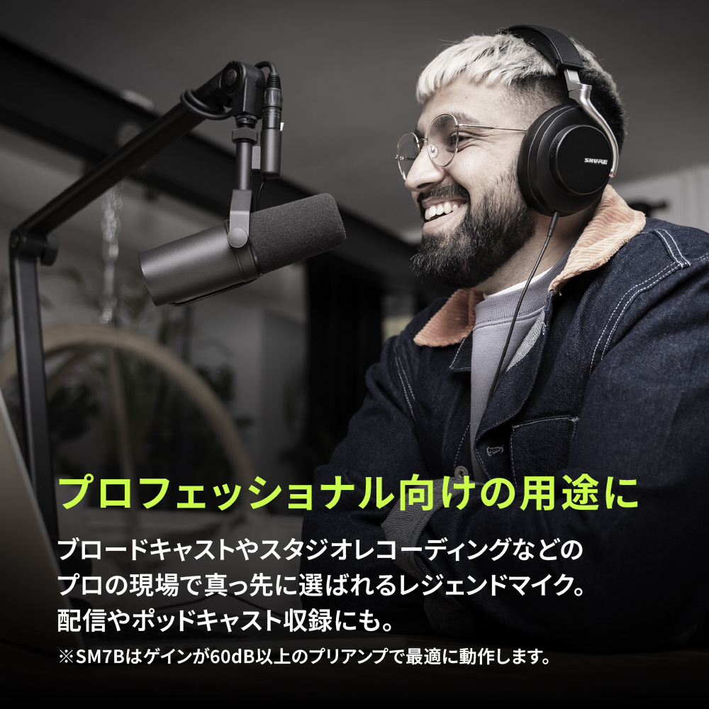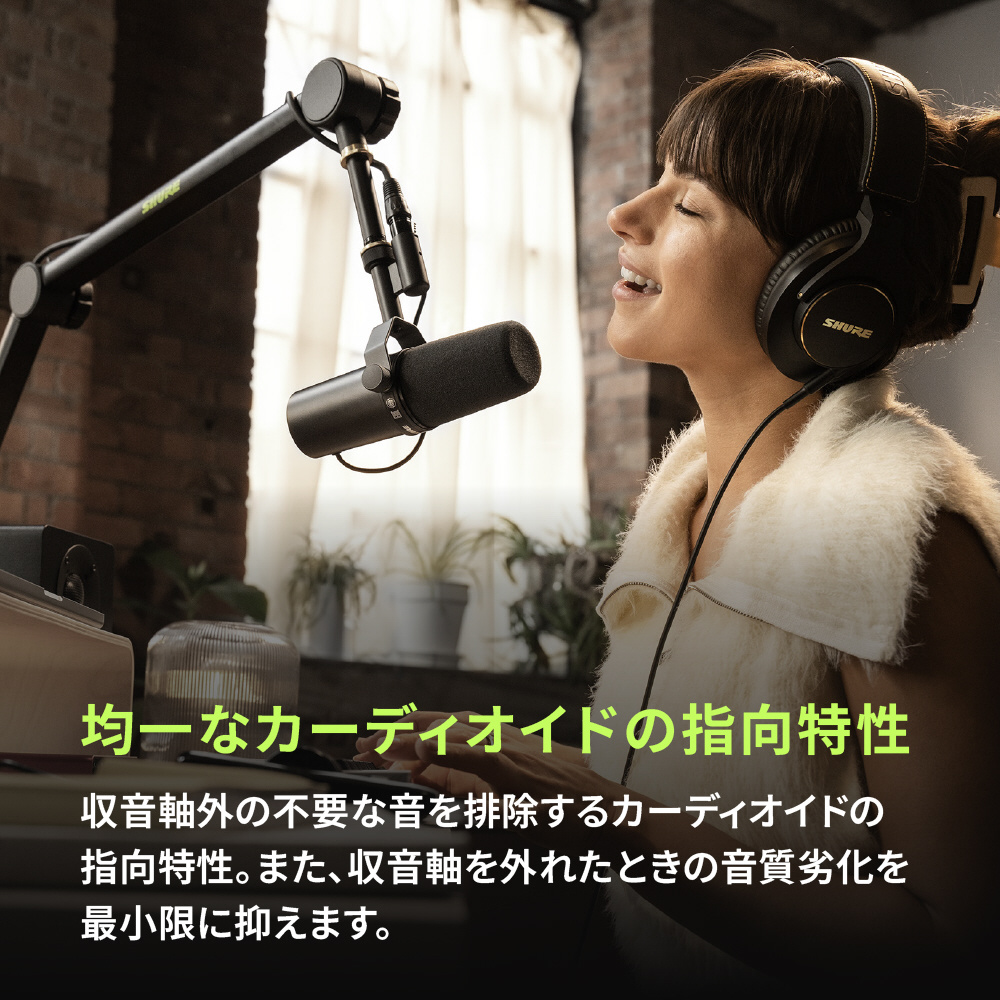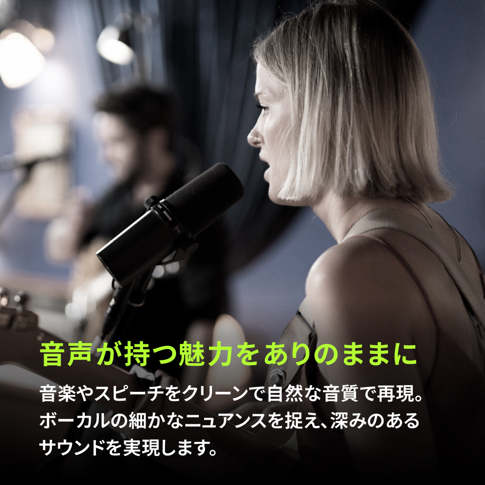 放送、ポッドキャスト、レコーディングなどでは、声の印象が肝心。洗練されたサウンドでは、ひとつひとつのディテールが 印象を大きく左右します。そのために開発されたのがSM7B。リスナーとの絆を深める、なめらかで温かみのある声を捉えます。