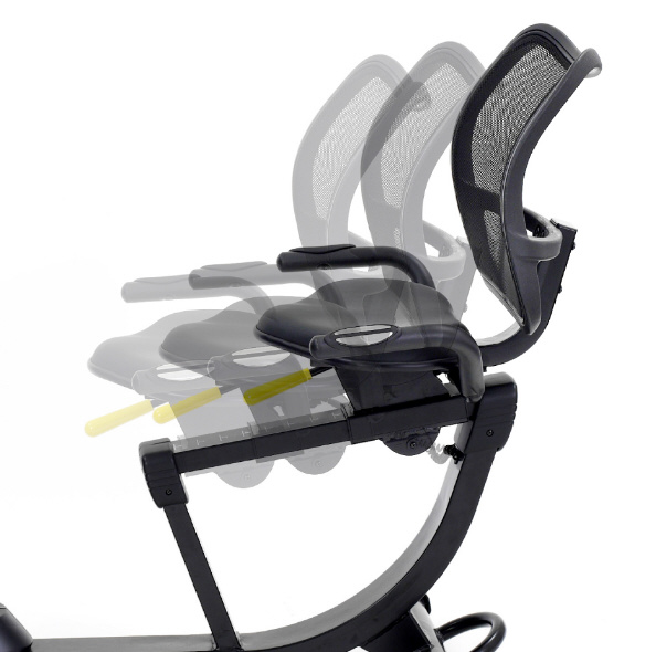 す。このリカンベントバイクはそんな不安を解消し、誰でも安心してご使用いただけます。本体とシートの間が広く、またぎ