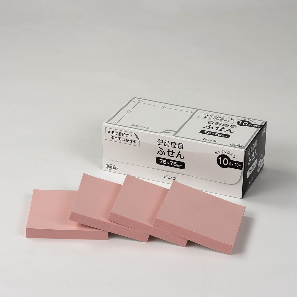 パッケージ付箋 75x75mm・10冊パック ピンク FSP7575-10P