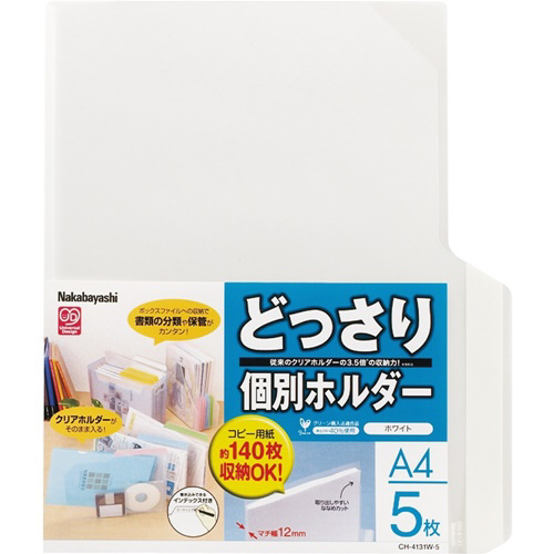| 商品名 | どっさり個別ホルダ-A4/5枚/ホワイト CH4131W5 |