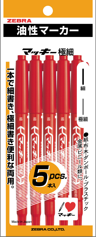 | 商品名 | 油性マーカー 極細 5本入パック マッキー 赤 P-MO-120-MC-R5 |