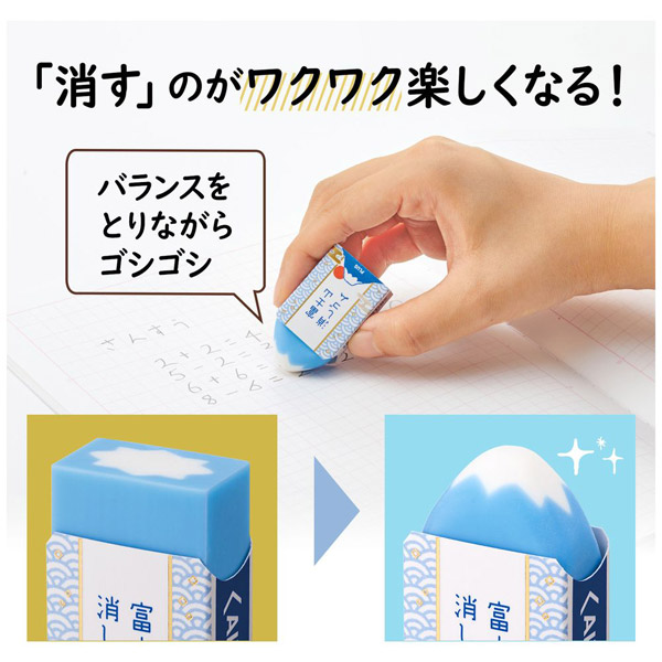 左右前後バランスよく消すことで、自分だけの富士山をつくることができます。もちろん、消し心地も抜群です。