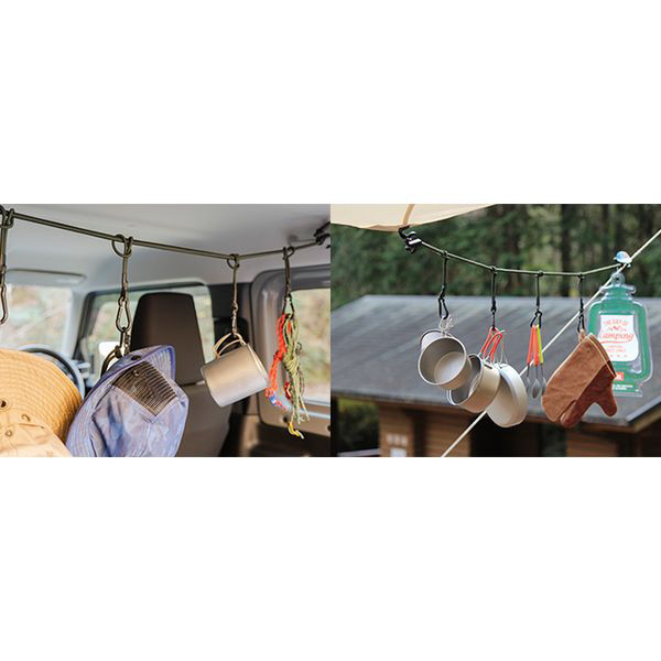 お気に入りのギアを吊るしてアウトドアシーンをカッコよく演出