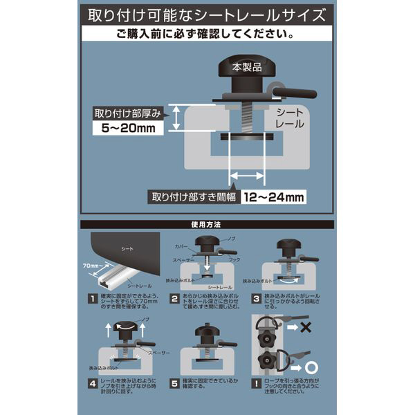 ●樹脂製フック/ゴムスペーサーでクルマに傷が付きにくい