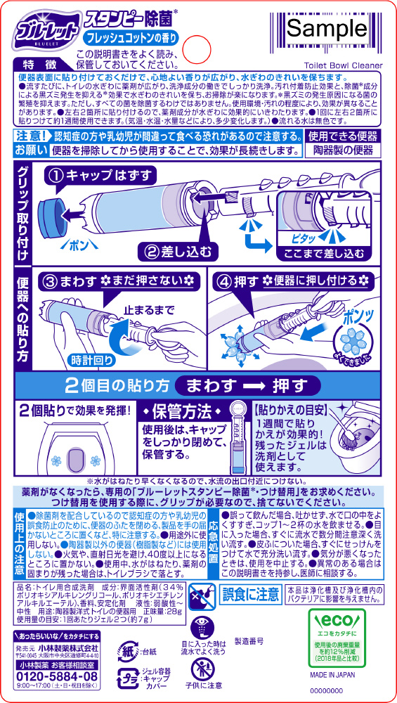 | 商品名 | ブルーレットスタンピー除菌効果プラス フレッシュコットン28g |