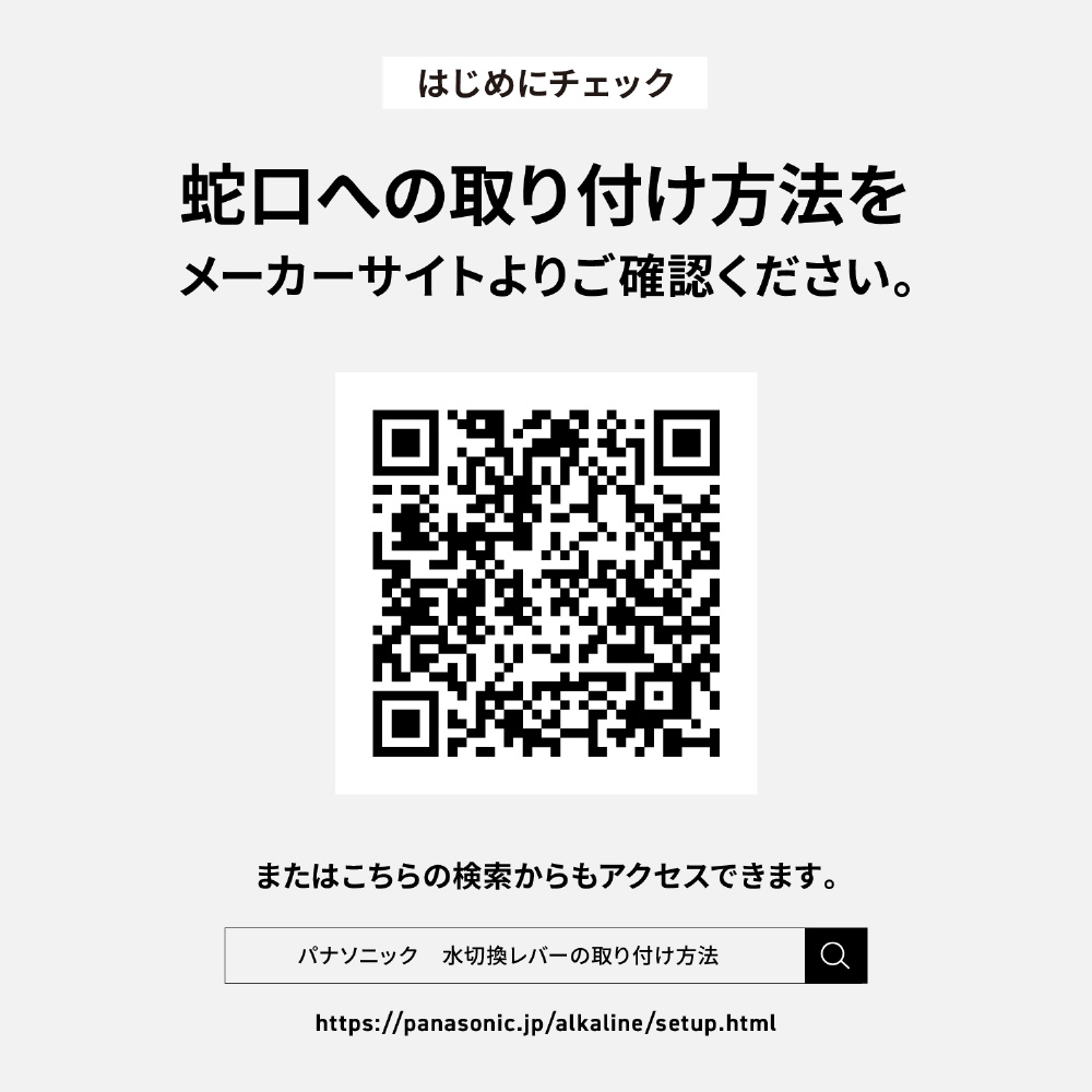 | 付属品 | 浄水カートリッジ1個 グリセロリン酸カルシウム製剤1袋 pH試験液 水切換レバー 固定具セット |