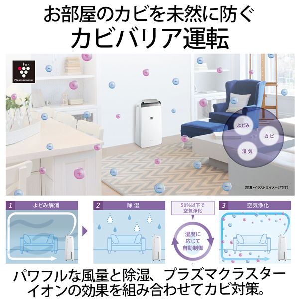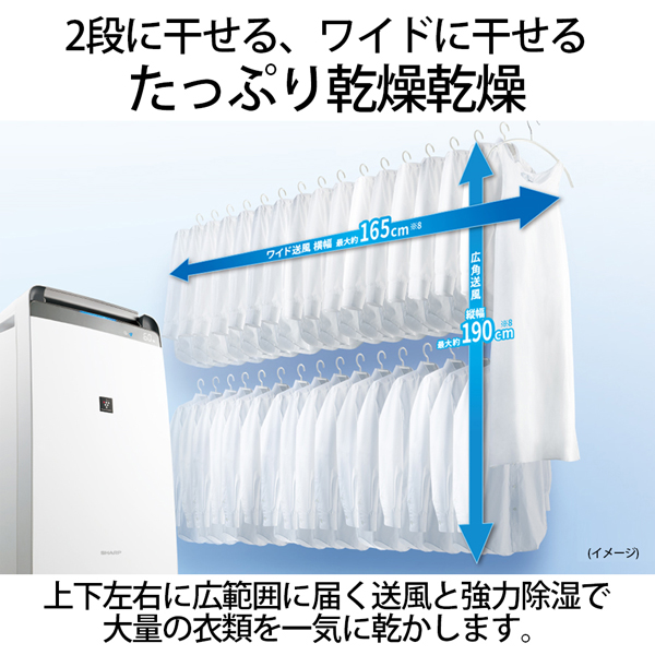 プラズマクラスターの風が、ニオイを寄せ付けず、パワフルに乾かす「衣類乾燥」除湿機。