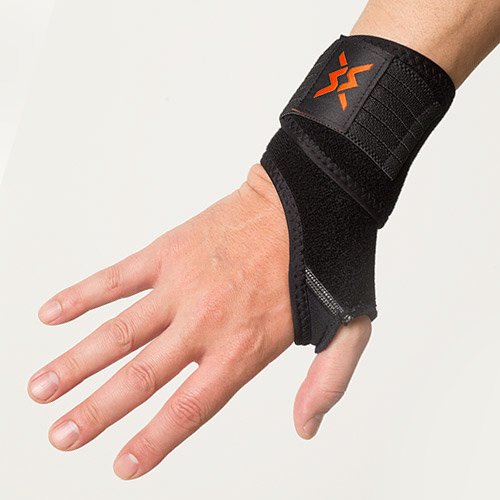 親指通し穴に親指かけてから手首に巻きつけるサポーターだから、