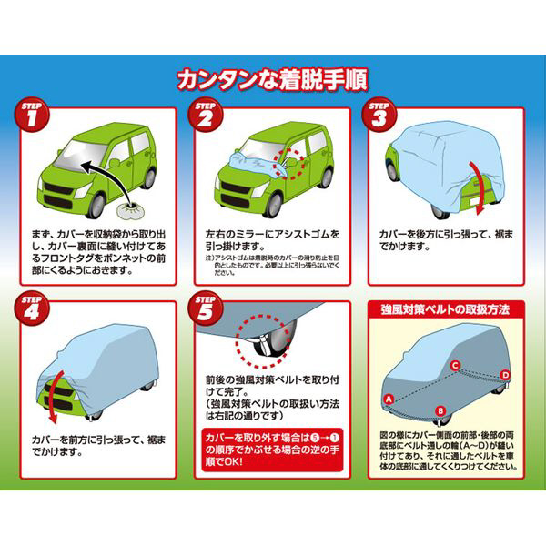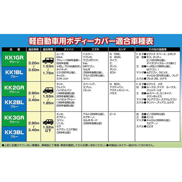KK3BL 軽自動車用ボディカバー 簡単装着タイプ 軽車高1.52m以下専用 適合代表車種:ダイハツ エッセ/オプティ/スズキ カプチーノ/ホンダ ビート他 カラー:ブルー