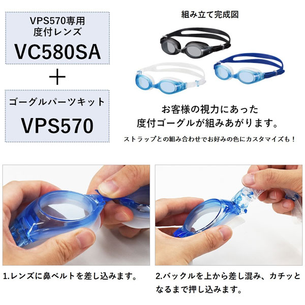 「カチッ」とレンズに差し込むだけ!簡単ベルト調整。肌に優しいシリコーンストラップ。別売りのレンズ(VC580SA/度付、VC581SA/度無し)専用パーツキットです。