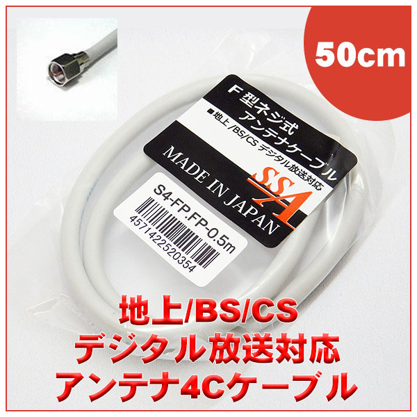 4K8K対応 テレビアンテナケーブル 【地上波デジタル、BSデジタル、CSデジタル】 0.5m 4C F型両端ストレート S4-FP-FP-0.5 SSAサービス グレー S4FPFP0.5