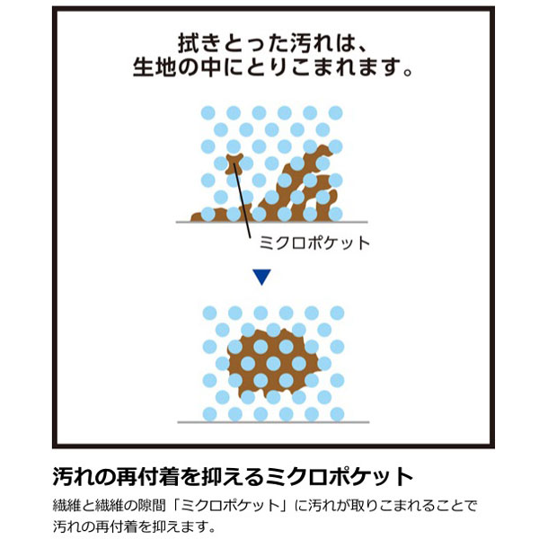 繊維と繊維の隙間「ミクロポケット」に汚れが取りこまれることで汚れの再付着を抑えます。