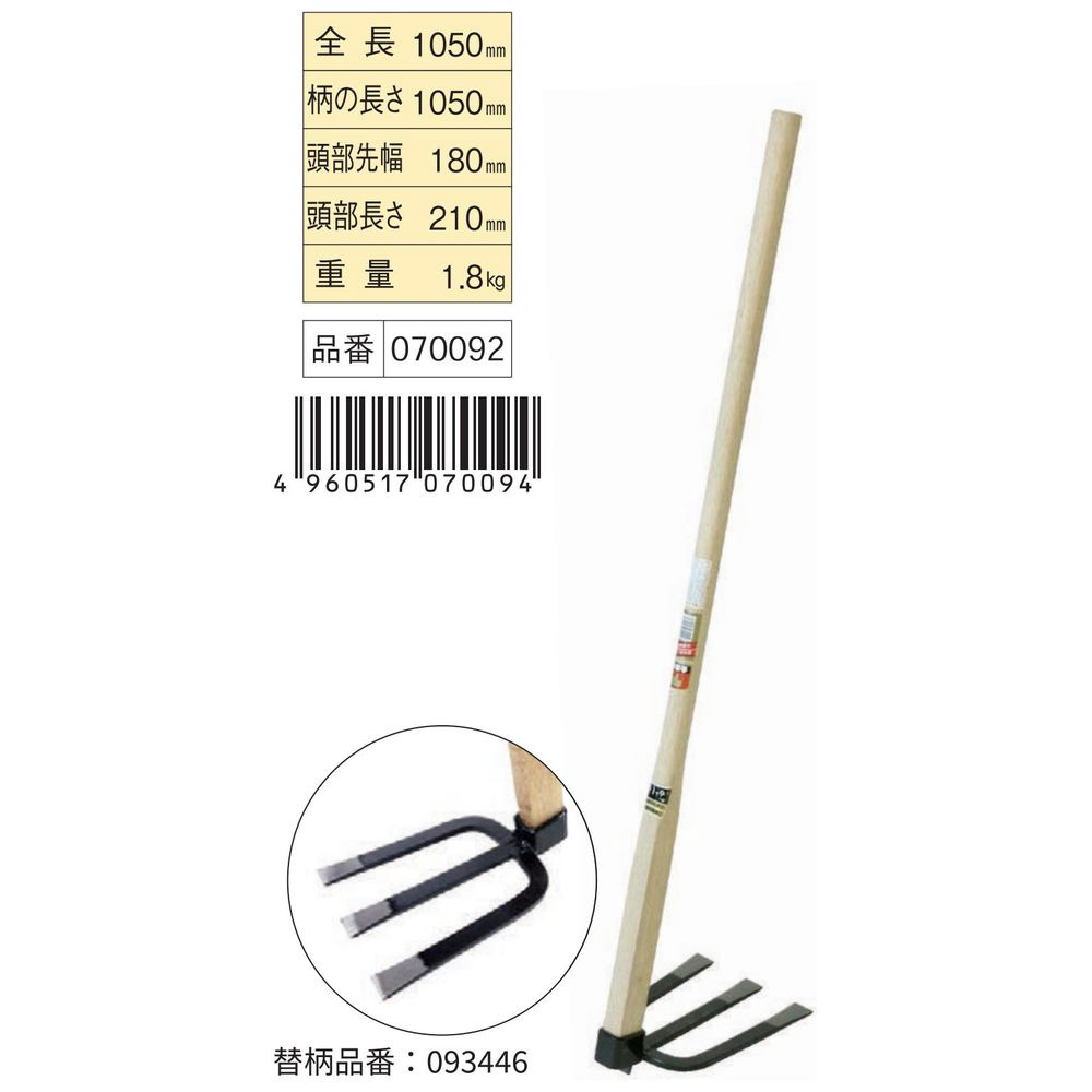 頭部(掘り起こし部)はスチール製三本爪タイプです。