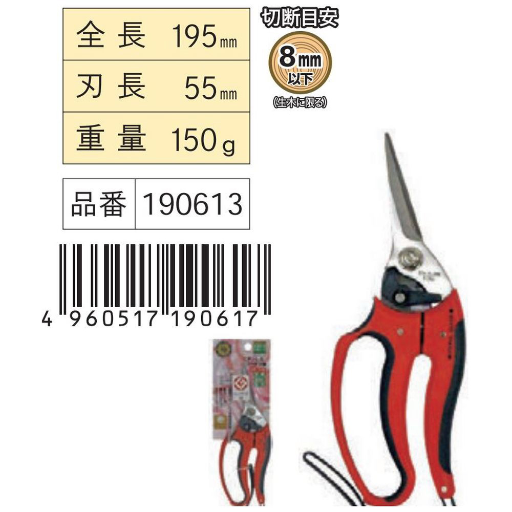 手にフィットするグリップを採用した、収穫、摘果、芽切り作業用ステンレス鋏。