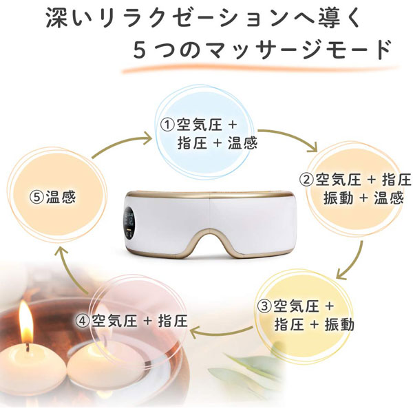 深いリラクゼーションへと導く3つのマッサージモードであなたの目元を癒します。